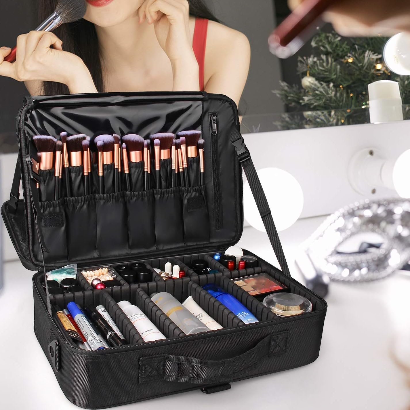 This travel makeup case includes four different ways to be carried. Suitable for usage as a backpack, shoulder bag or handbag. You may even link it to a cart for simple transportation should you need to go outside.