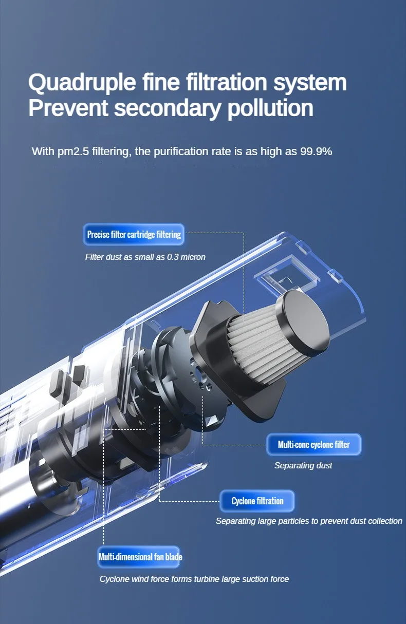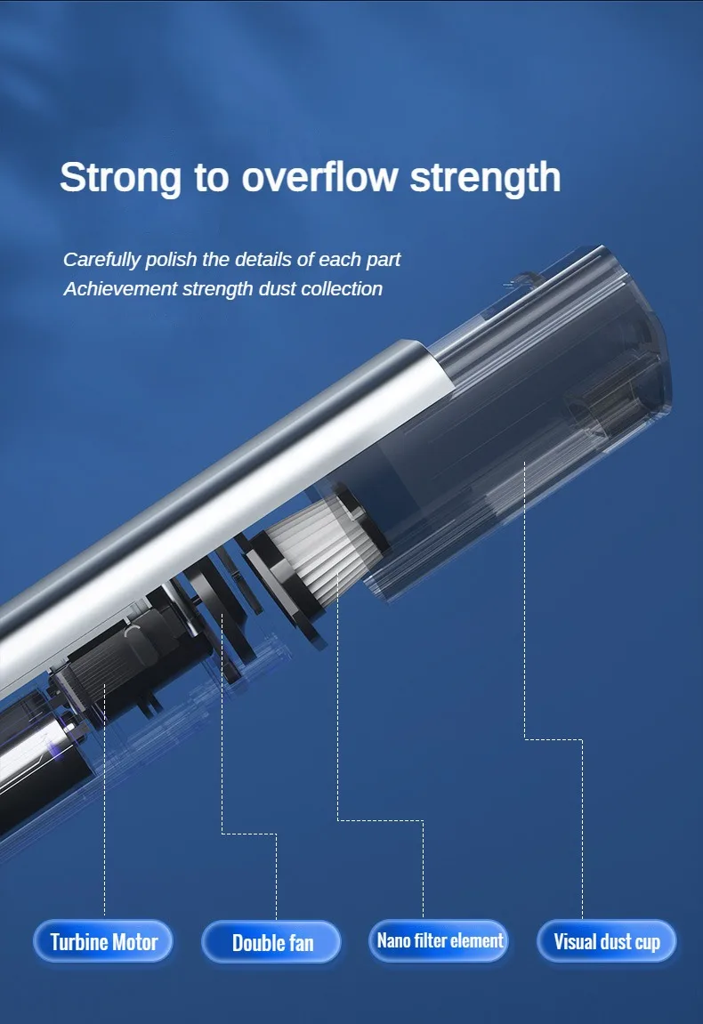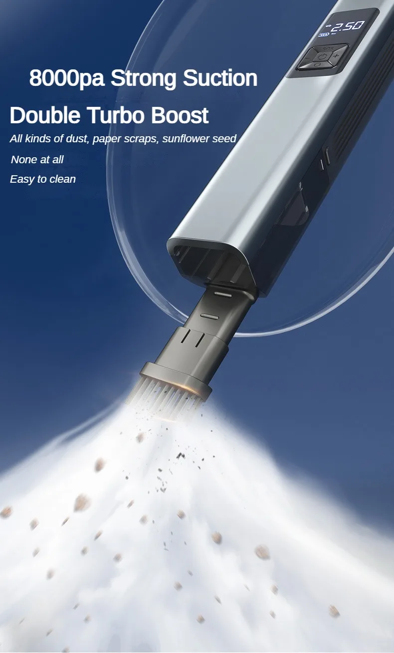 Equipped with a robust 120W motor delivering 6000Pa suction, this vacuum effortlessly removes dust, debris, and pet hair, leaving your car interior immaculate.