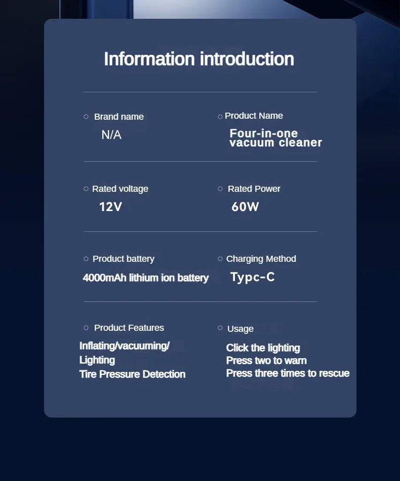 Experience the ultimate convenience with our compact device that combines a powerful vacuum cleaner and a tire inflator. Keep your car spotless and your tires perfectly inflated—all with one tool!