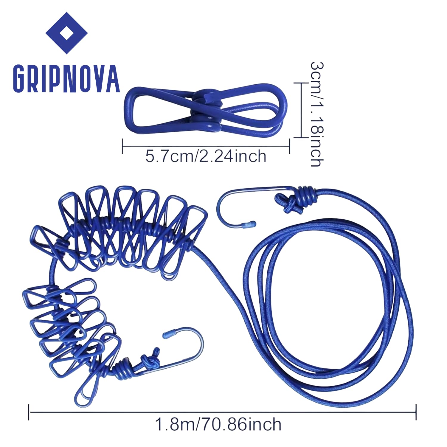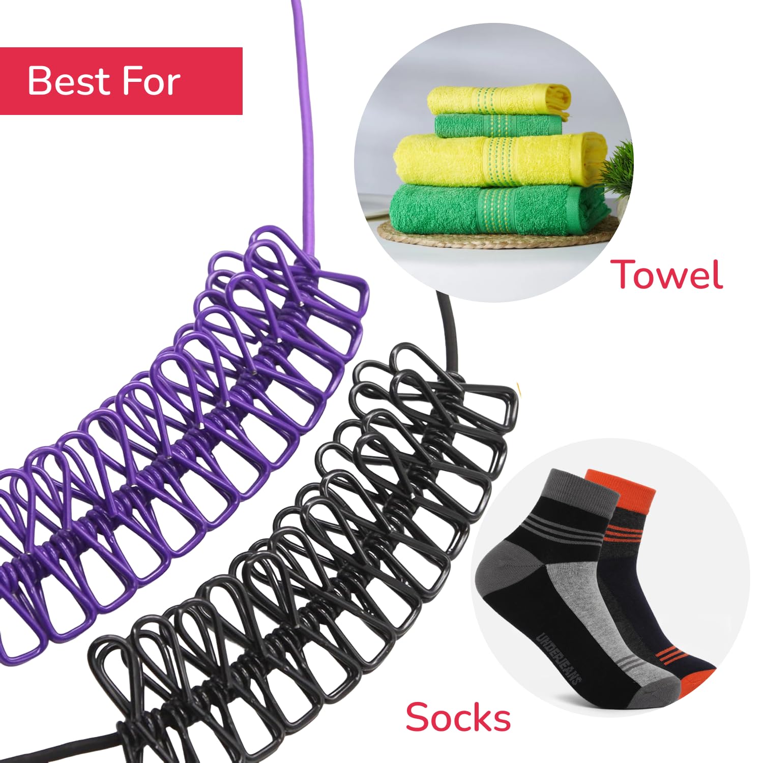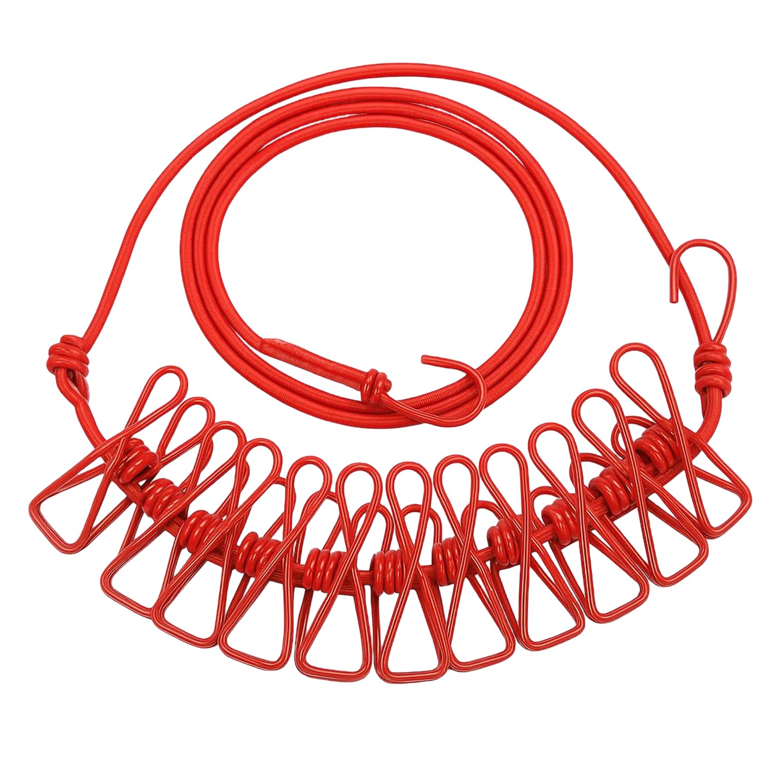 Cloth Drying Rope with Hooks Elastic Clothesline with 12 Clips for Travel, Home & Outdoor Multicolor Kapde Sukhane Ki Rassi