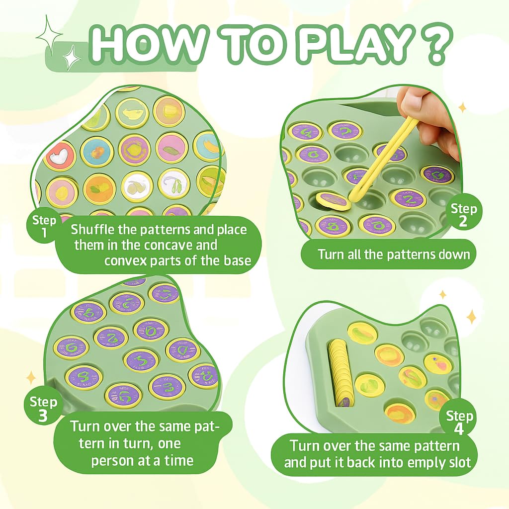 - 【How to Play】The chess memory game can be played by 2 to 4 players, who take turns flipping the chess pieces and taking them back after flipping the same pattern. A retractable finger stick and tool pen are provided to enhance the various game experiences.