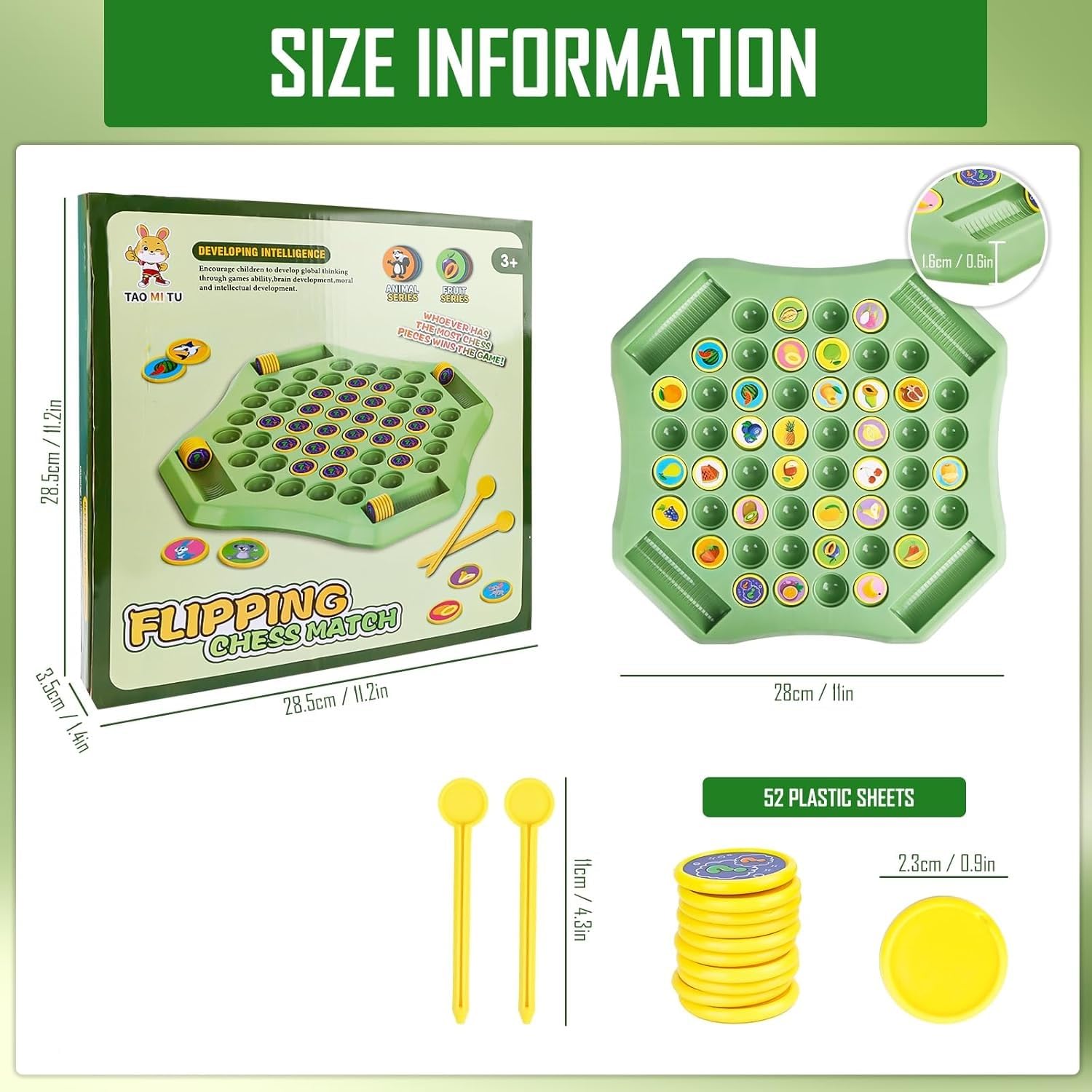 - 【Interactive Game Experience】The two-player cartoon flip chess game is matched within the specified time, and the player with the most matching times wins. Suitable for two-player games, enhance excitement and strategic thinking.