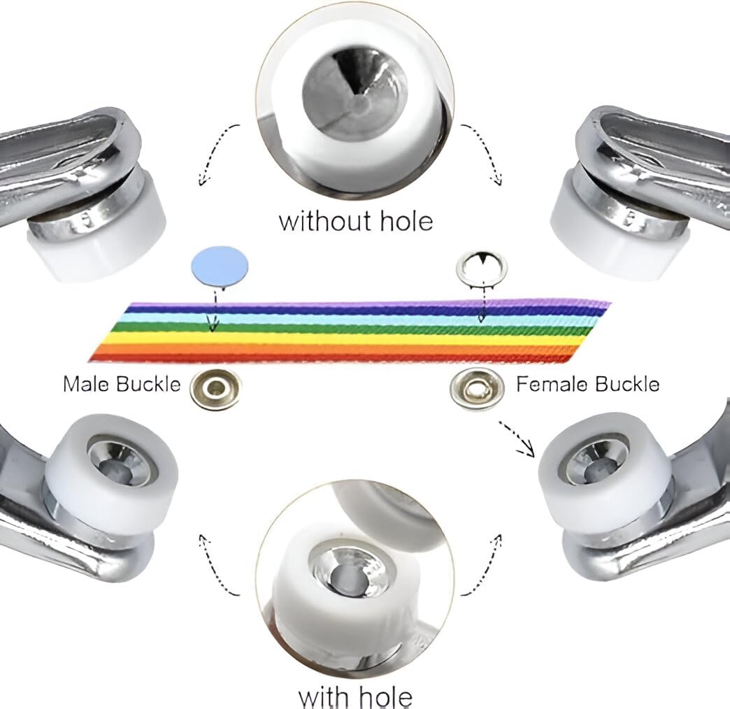 - Warm prompt - You need to punch holes with a punching tool before using the buttonhole and pliers. Please pay attention to the direction of the buttonhole and the pliers, the wrong direction will cause damage to the buttonhole. Add the washer to the grommet, which can help make eyelets stronger, not easy to loosen. The bottom of the eyelets is flowering design, it is not a defective effect, please kindly note.