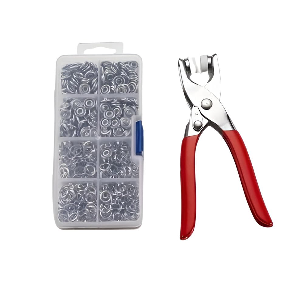 Grommet Eyelet Pliers Kit, Metal Eyelets with Washers in Gold/Silver, Portable Eyelet Grommet Hand Press 1/4 Inch 6mm Grommet Tool Kit for Leather/Belt/Shoes/Cloths