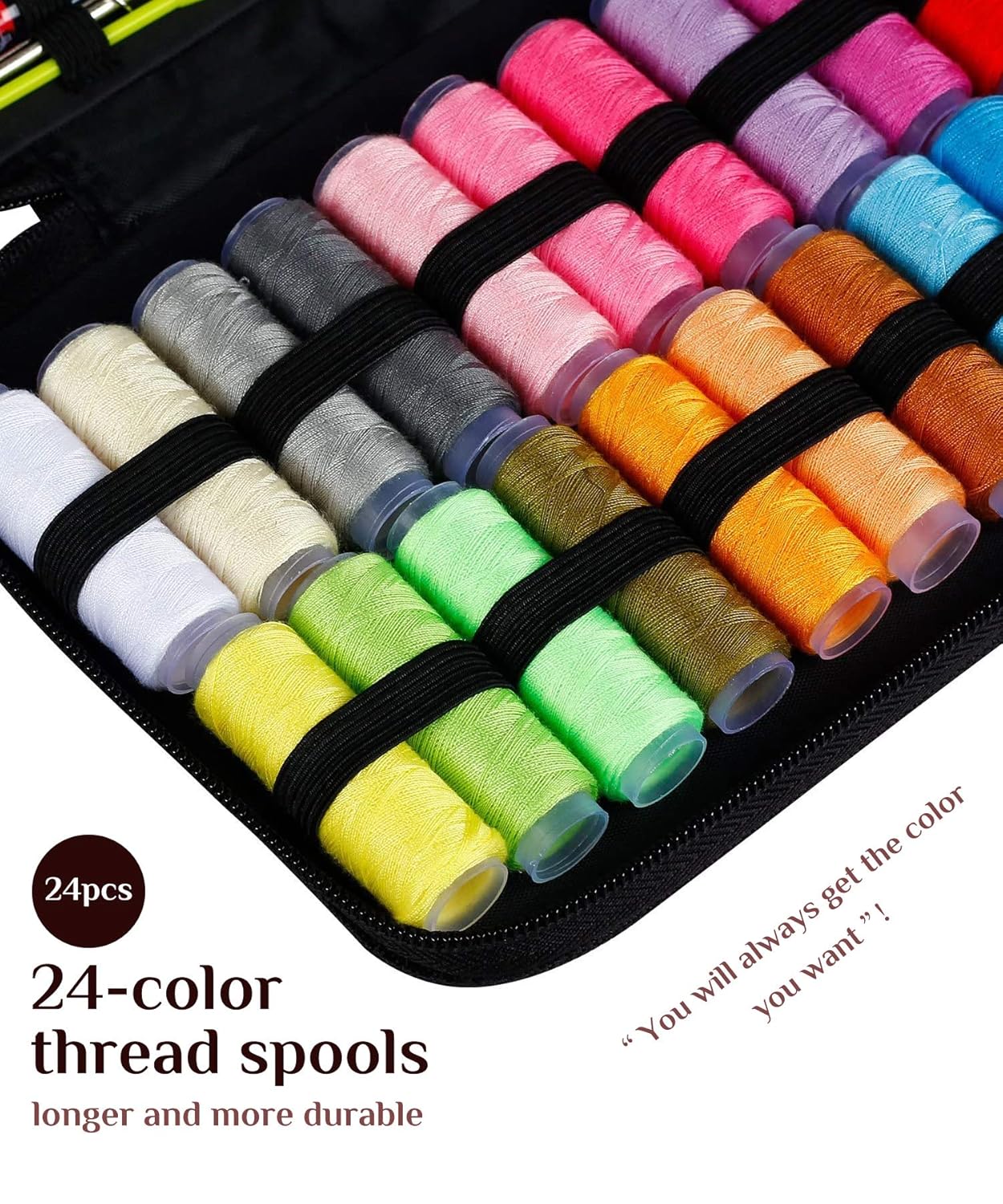 Sewing Kit with Case Portable Sewing Supplies for Home Traveler, Adults, Beginner, Emergency, Kids Contains Thread, Scissors, Needles, Measure, Black