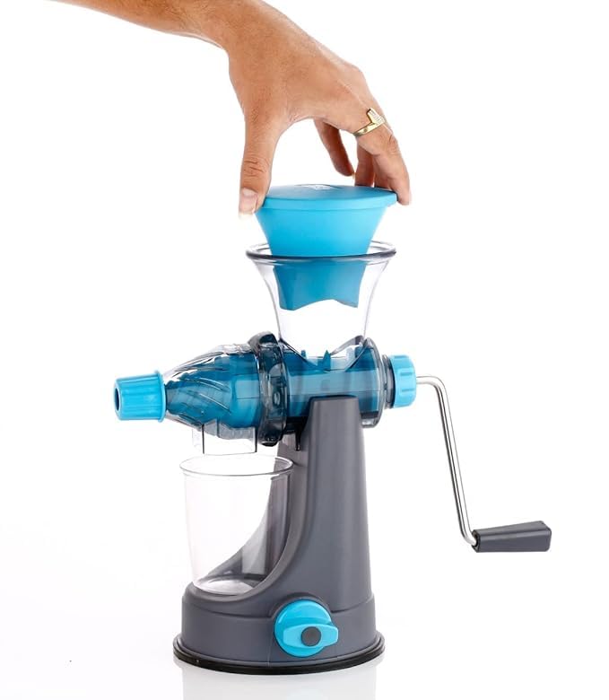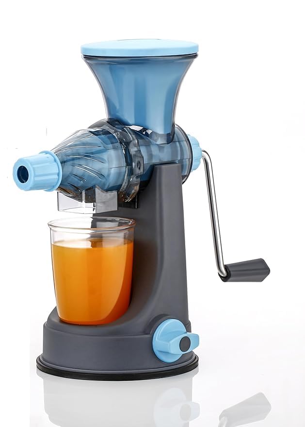 - [ANTI-SKID BASE] The handle fruit juicer machine comes with an anti-skid base which creates a vacuum while in use and prevents it from moving back and forth during the extraction of juice.