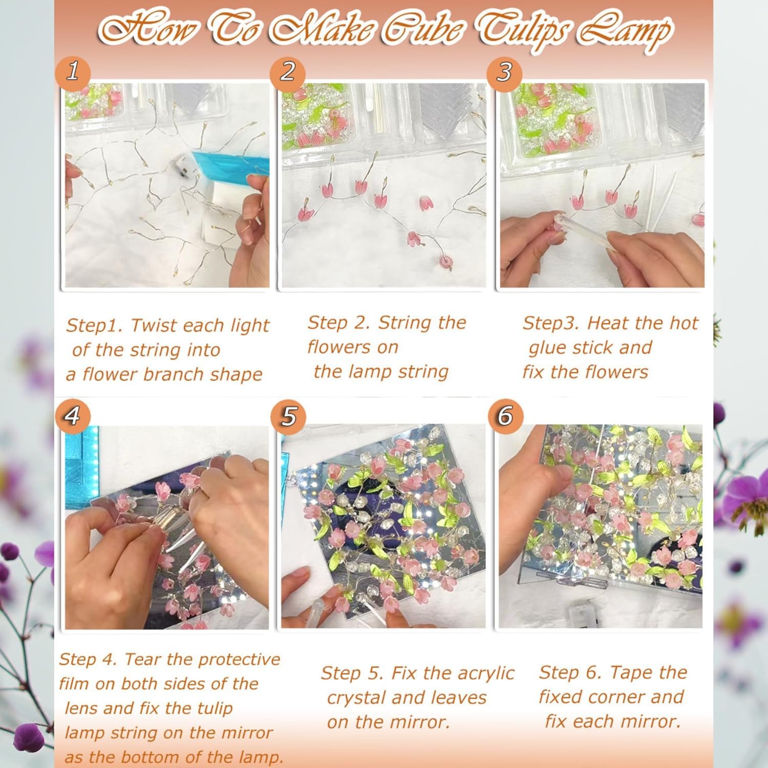 - Embrace the joy of crafting with the DIY Tulip Cube Mirror Lamp. This set allows you to design your own unique decorative lamp with 20 vibrant pink tulip flowers.